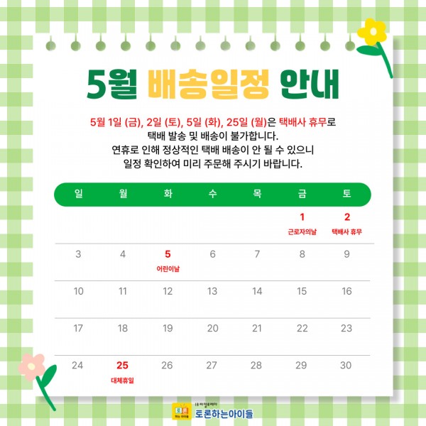 5월 배송 일정 안내