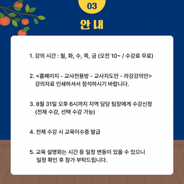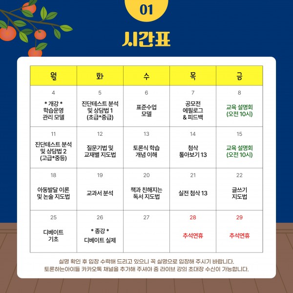 9월 교육 설명회 일정