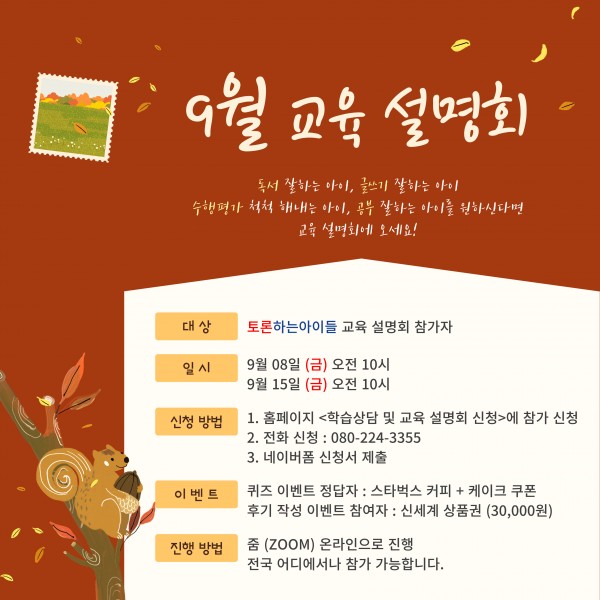 9월 교육 설명회 일정